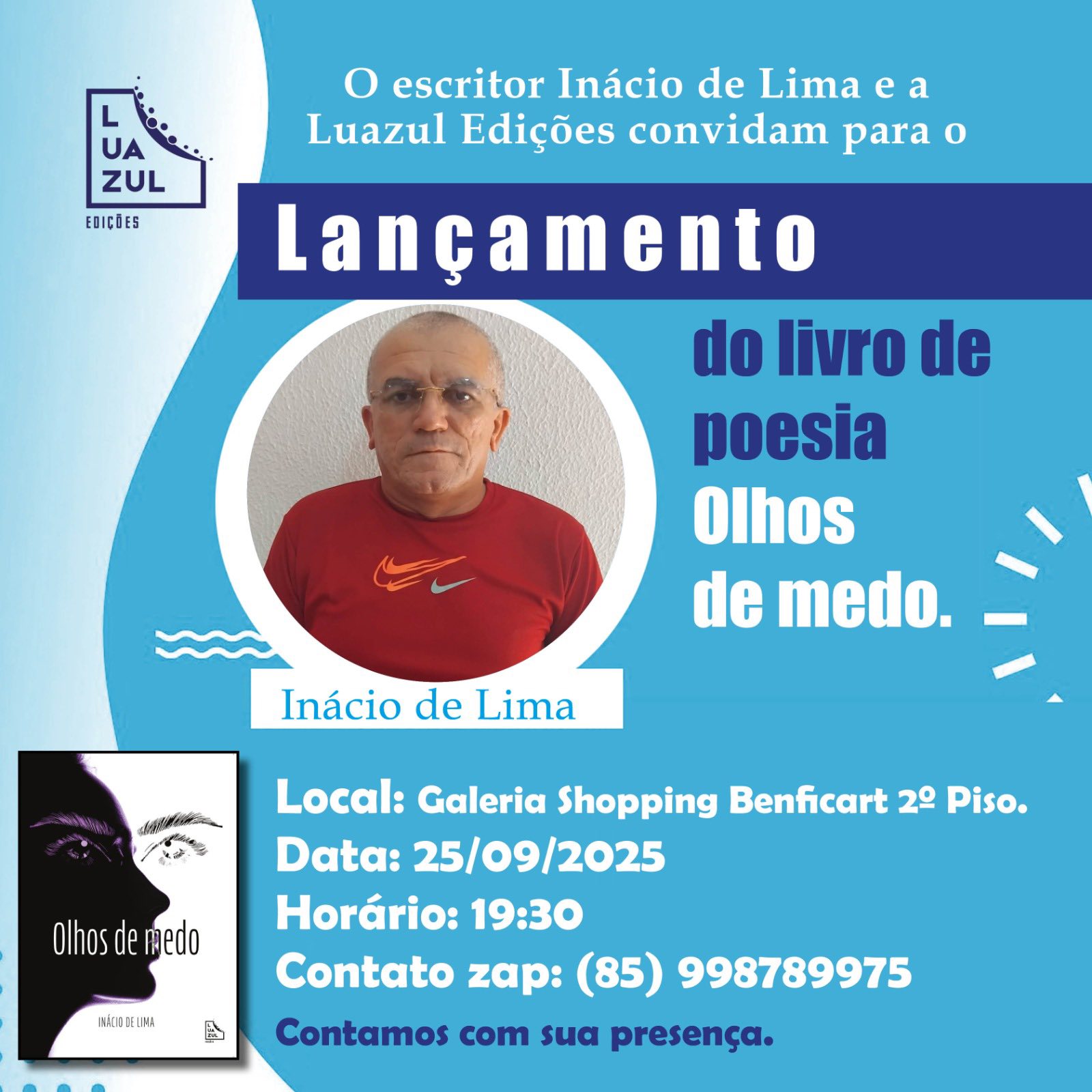 Convidamos você a mergulhar no universo de “Olhos de Medo”, obra do associado da APS e policial militar Inácio de Lima. O lançamento acontecerá no dia 25/09 (quinta-feira), às 19h30, na Galeria do Shopping Benficart (2º Piso).