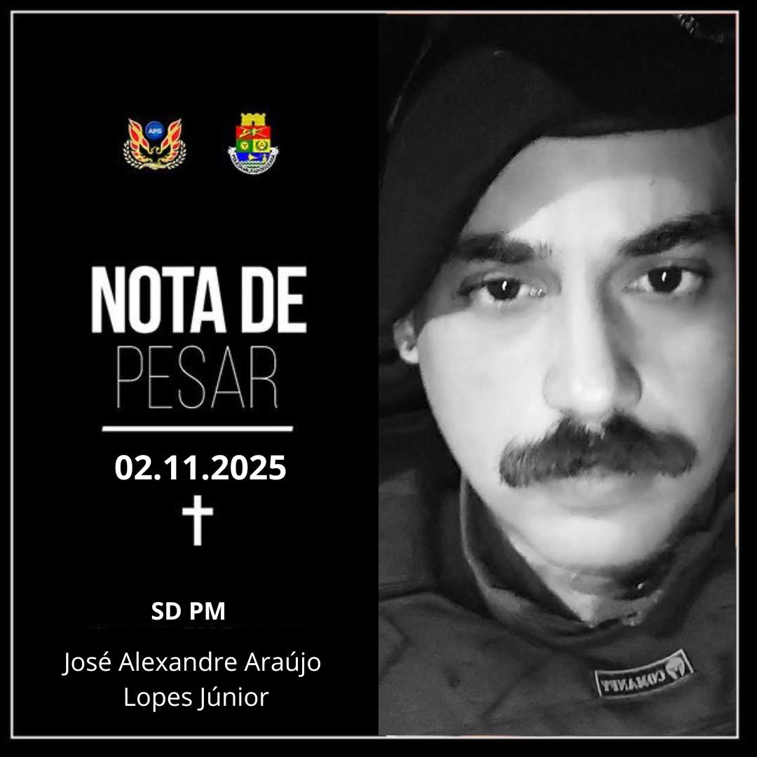 É com profundo pesar que nos despedimos do nosso associado e soldado da Polícia Militar do Ceará (PMCE), José Alexandre Araújo Lopes Júnior, falecido neste domingo, 2 de novembro, vítima de um infarto.Ao longo de sua trajetória, o policial honrou a farda da instituição com dedicação, disciplina e coragem, sendo exemplo de profissionalismo, respeito e liderança. Estava lotado na 2ª CIA do 20° BPM.A Associação dos Profissionais da Segurança (APS) expressa suas mais sinceras condolências aos familiares, amigos e irmãos de farda, pedindo a Deus que conforte e fortaleça cada coração neste momento de dor.O legado do soldado Lopes Júnior permanecerá vivo não apenas na corporação, mas também na memória de todos que tiveram o privilégio de conviver e servir ao seu lado.Descanse em paz, SD Lopes Júnior. 🥀