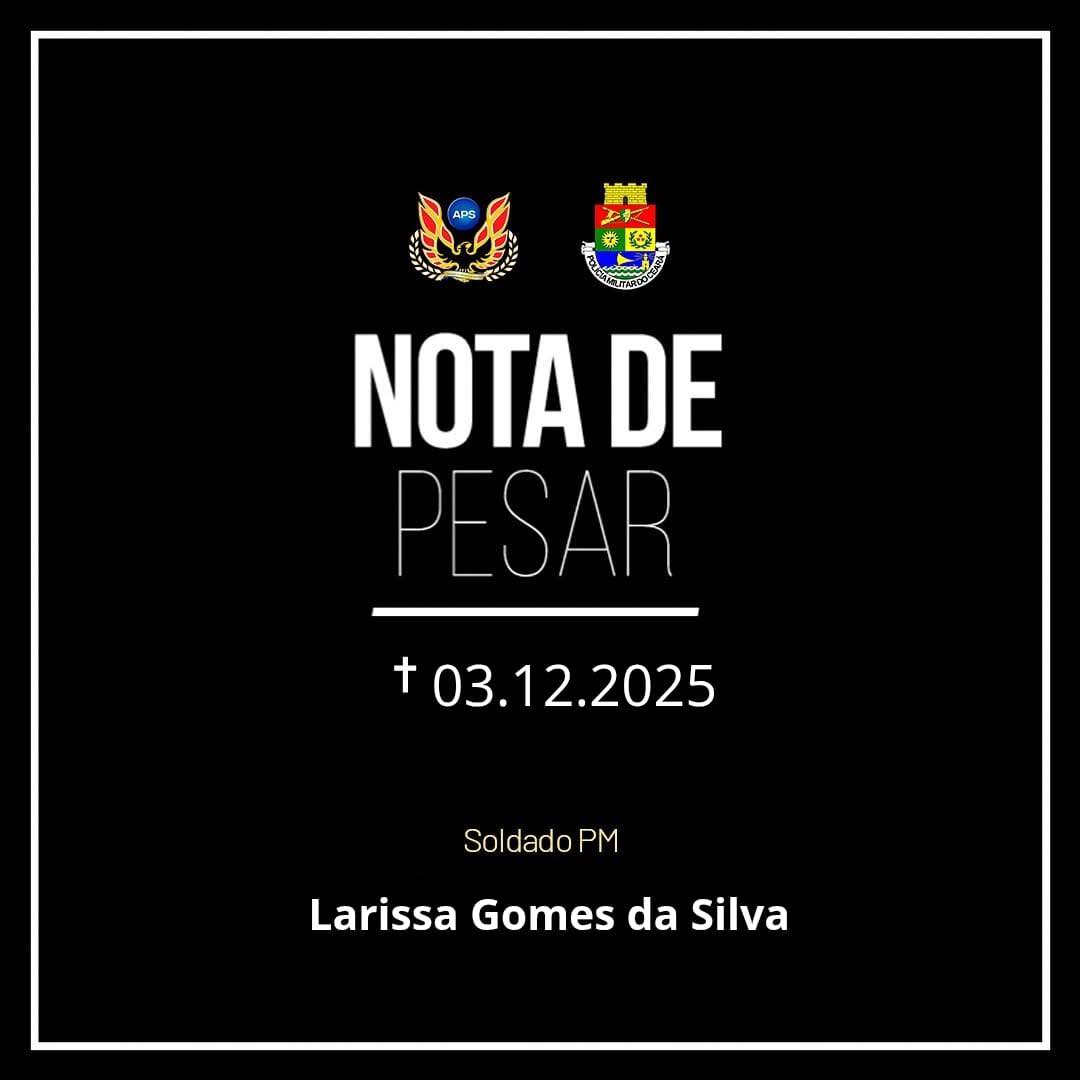 Na noite desta quarta-feira (3), a Associação dos Profissionais da Segurança (APS) lamenta profundamente o falecimento da soldado Larissa Gomes da Silva, da Polícia Militar do Ceará (PMCE), profissional que dedicou sua vida à segurança da sociedade cearense.